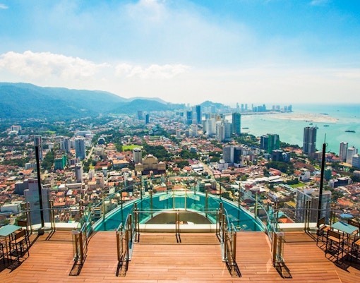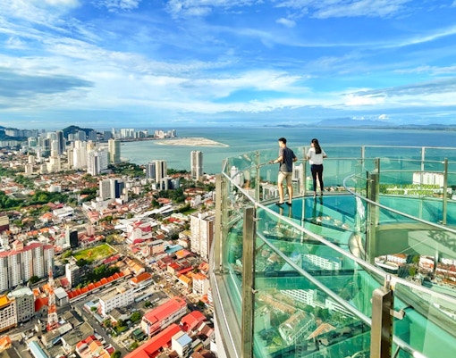 Le Rainbow Skywalk et l'Observatory Deck de The TOP Penang vous offrent une expérience inoubliable, au-dessus de George Town. L'audacieux Rainbow Skywalk vous permet d'accéder à une plate-forme en verre à ciel ouvert qui s'étend au-delà du bord du bâtiment, vous procurant une sensation exaltante lorsque vous marchez sans rien d'autre que du verre transparent entre vous et la ville en contrebas. Pour une ambiance plus décontractée, rendez-vous sur la terrasse de l'Observatoire, où des fenêtres allant du sol au plafond offrent une vue imprenable sur la ligne d'horizon de Penang.